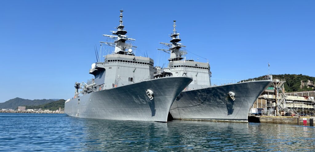 今日は海自の船が沢山停泊している画像は二隻だけですが、十数隻は油津港に来ている。旭日旗が素敵です!